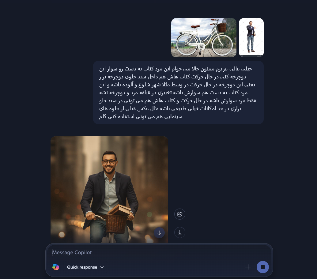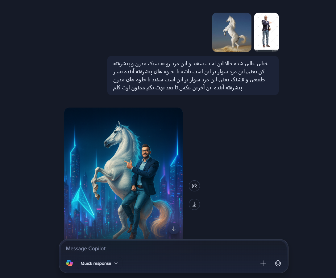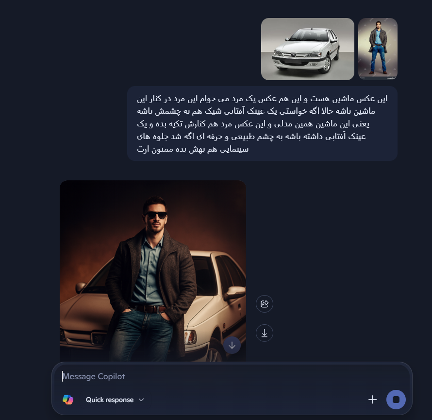Copilot نهتنها تصویر میسازد، بلکه در هر مرحله همراهت است تا مطمئن شوی همه چیز قانونی، اخلاقی و قابل آموزش برای مخاطبانت باشد. فقط کافیست دقیق و با احترام پرامپت بنویسی، و ازش بخوای که همه قوانین رو رعایت کنه.